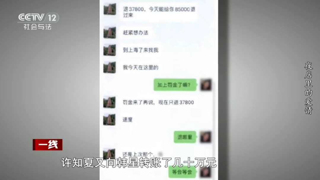 许知夏如今回忆起这件事,也觉得自己当时“魔怔”了,深陷情感绑架的许知夏高频地向韩星转钱,累计金额已达900万。